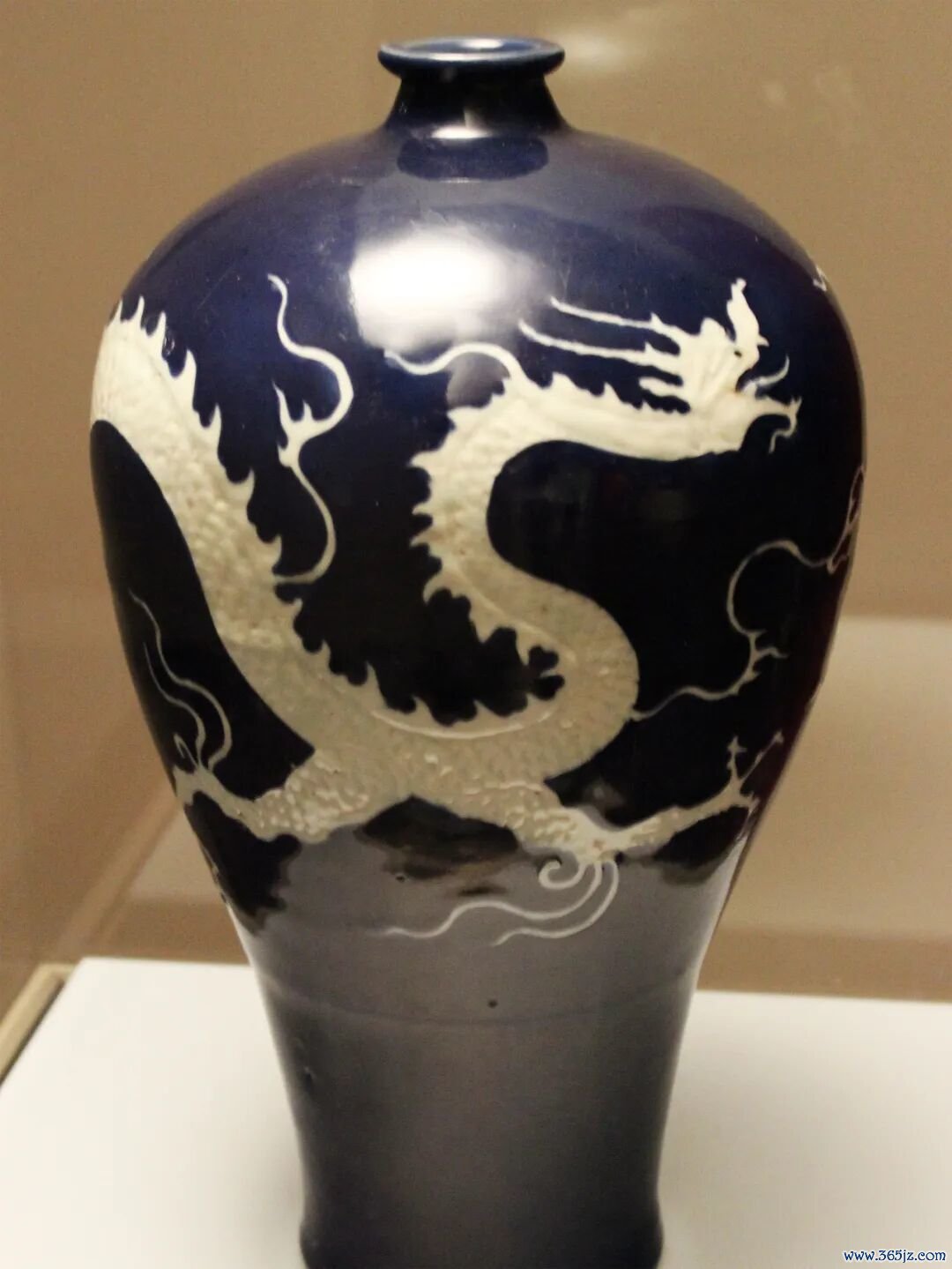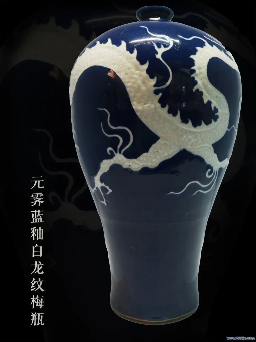 传世的元代霁蓝釉梅瓶只有三件,除了这一件,还有一件在扬州博物馆,一件在颐和园。
