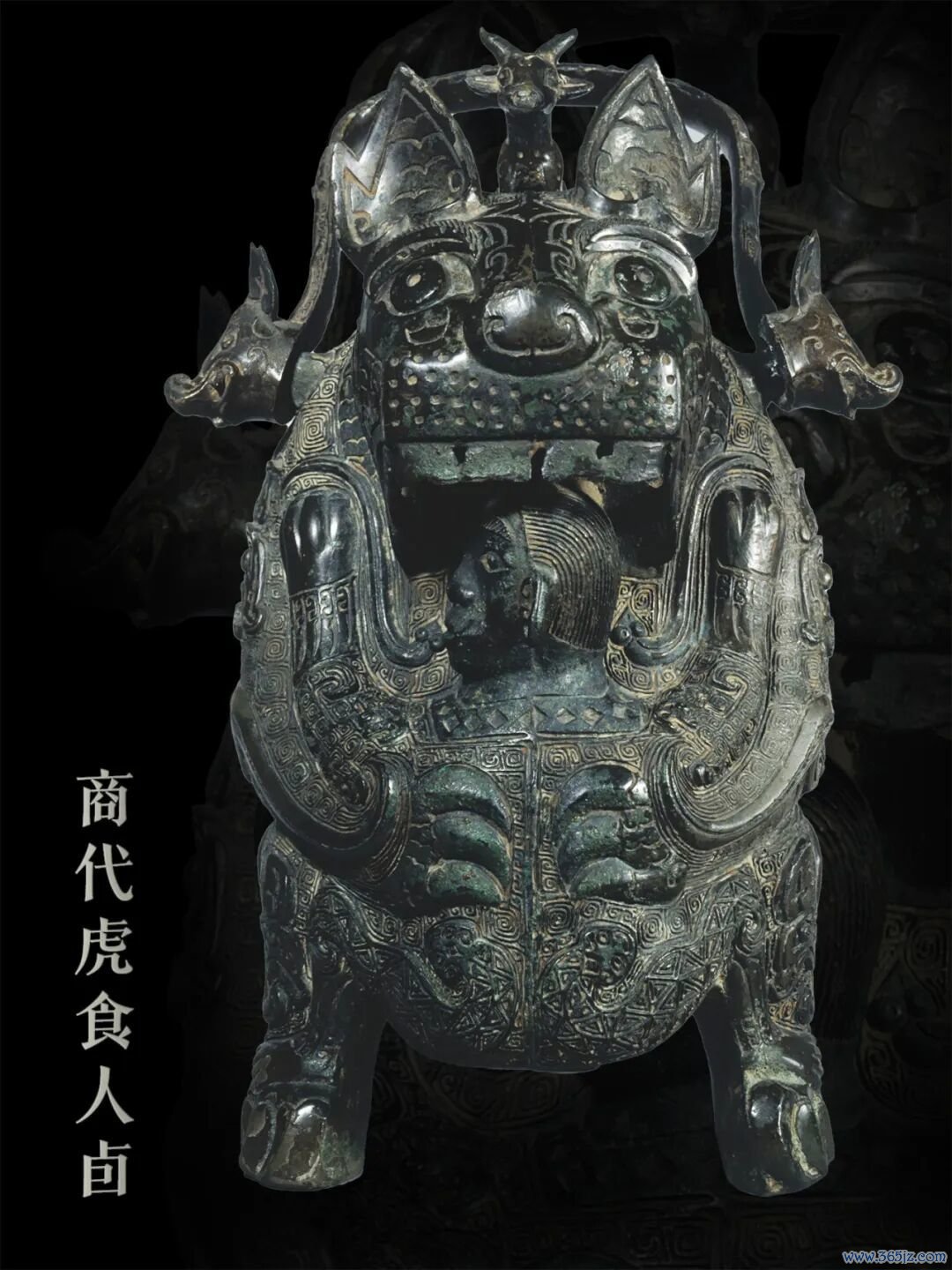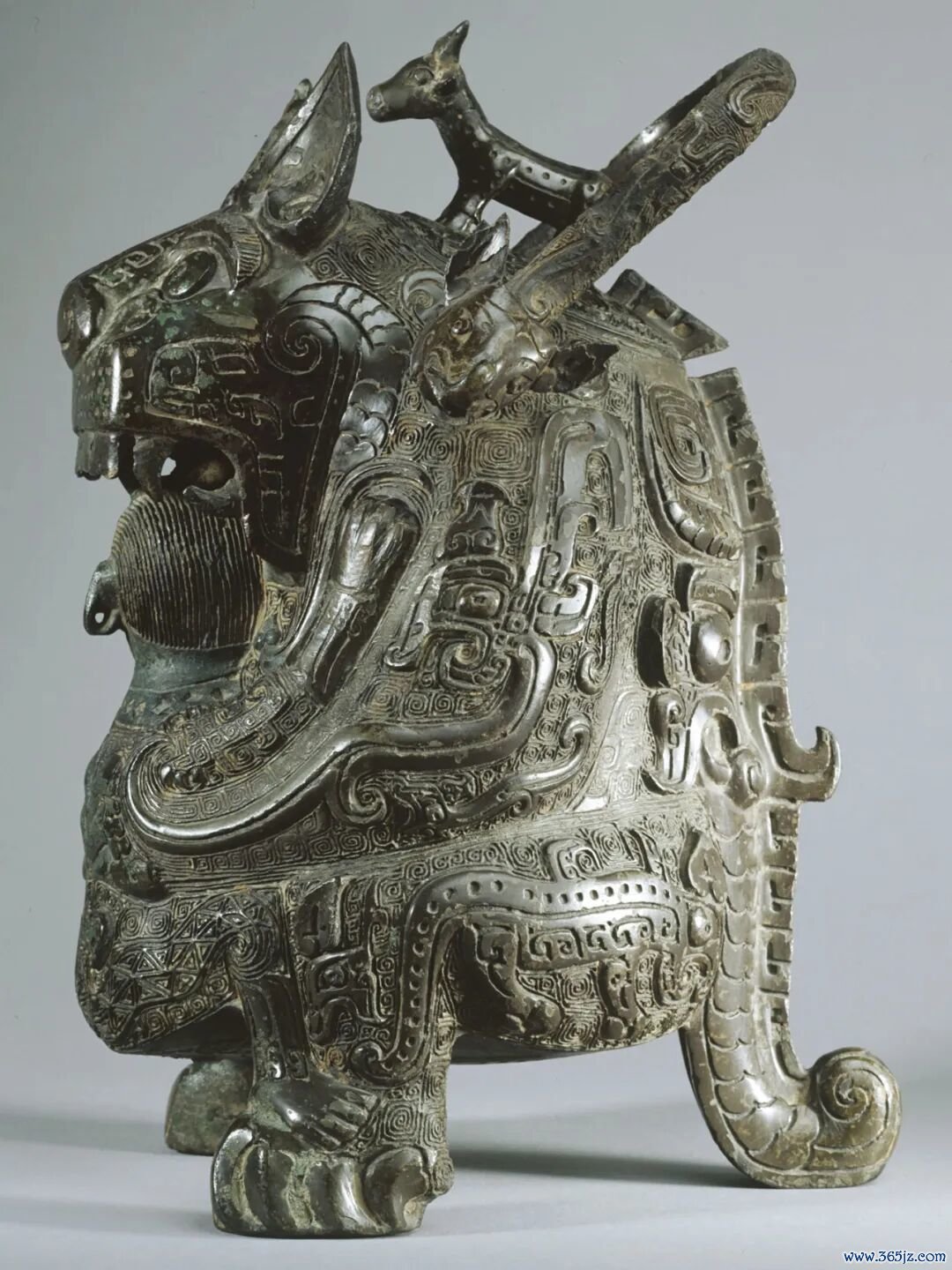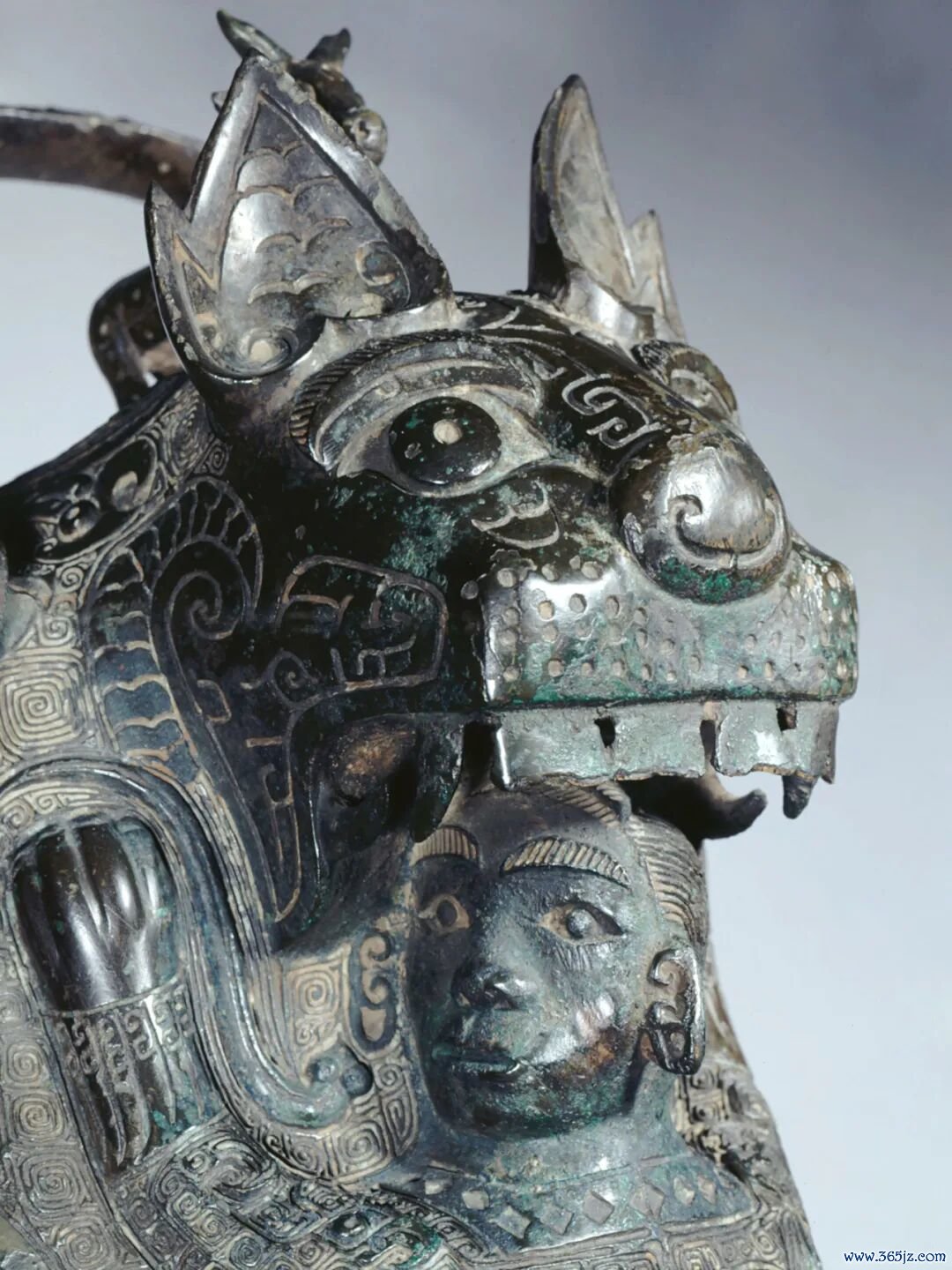 这是塞努奇博物馆的镇馆之宝。造型是一只老虎正在张嘴吃人,上方有一个提手,盖上有一只山羊。老虎的尾巴和两个爪子构成了器物的三足。虎身布满纹饰,虎眼炯炯有神。
