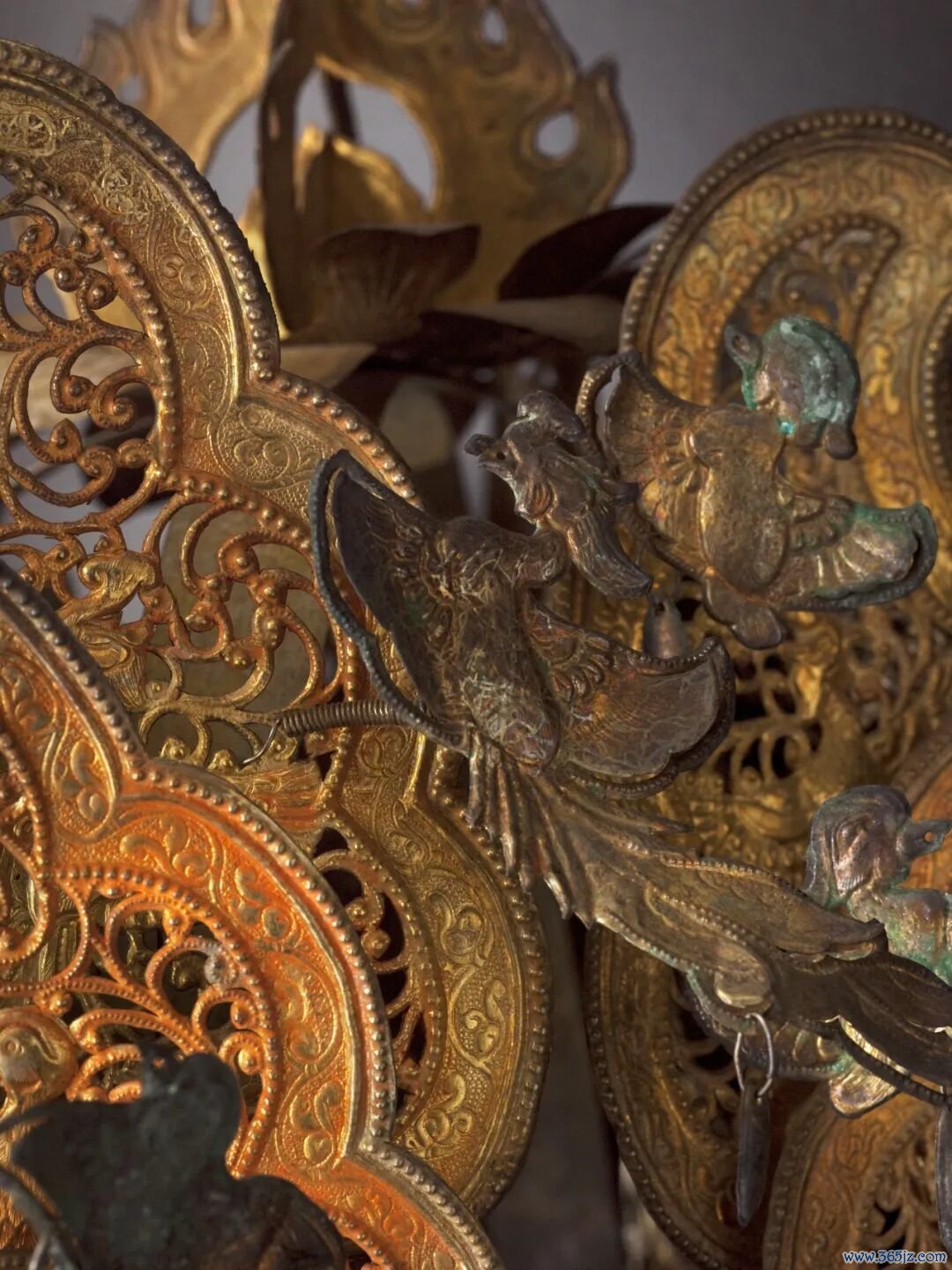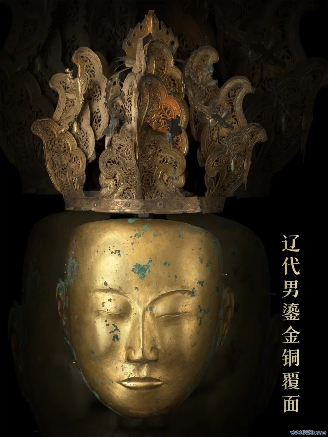 两件覆面精准地反映了男女墓主人的长相,男子覆面甚至能看见胡须。两件冠饰也都是精雕细琢,反映了辽代精湛的加工工艺。