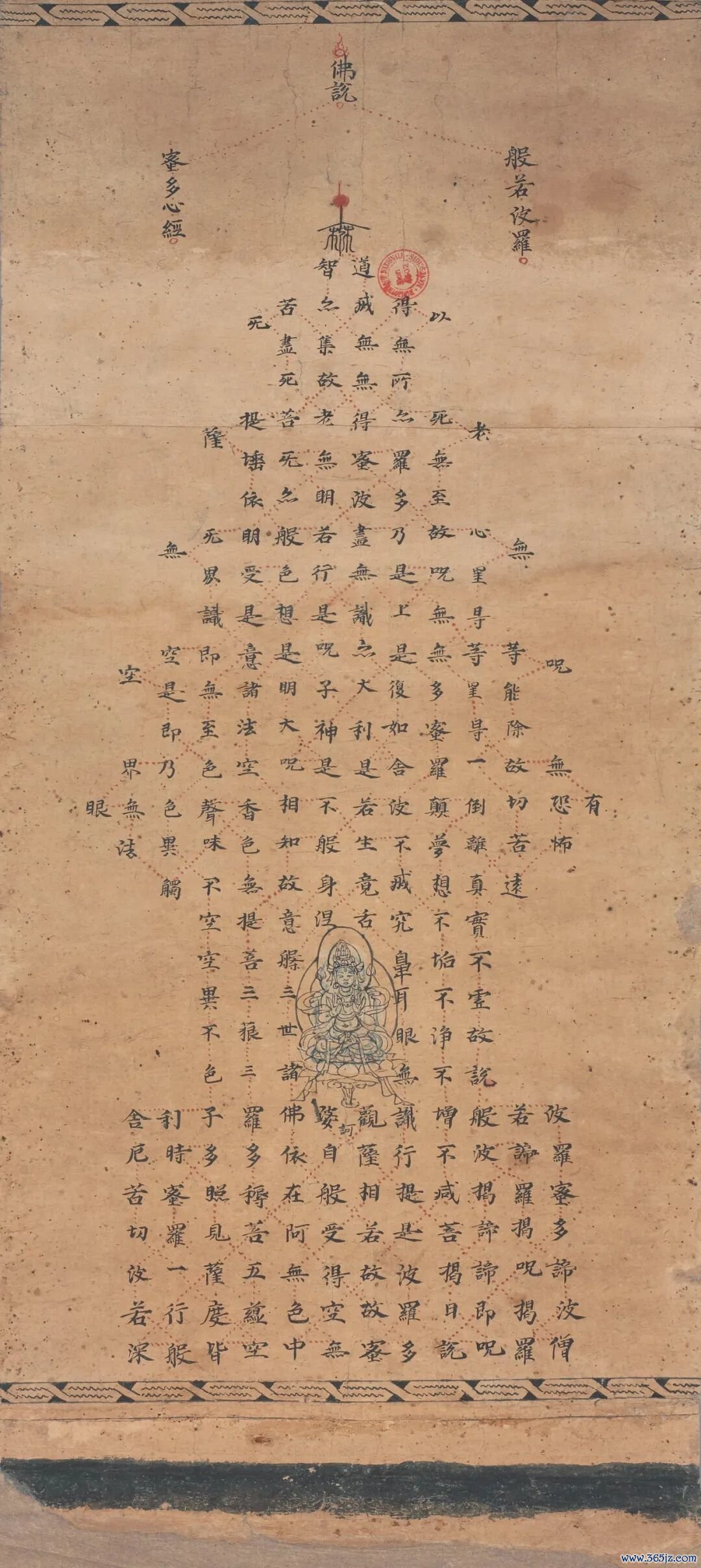 260字的《心经》是般若类佛经的总纲。这件《宝塔心经》把《心经》写成了宝塔的形状。